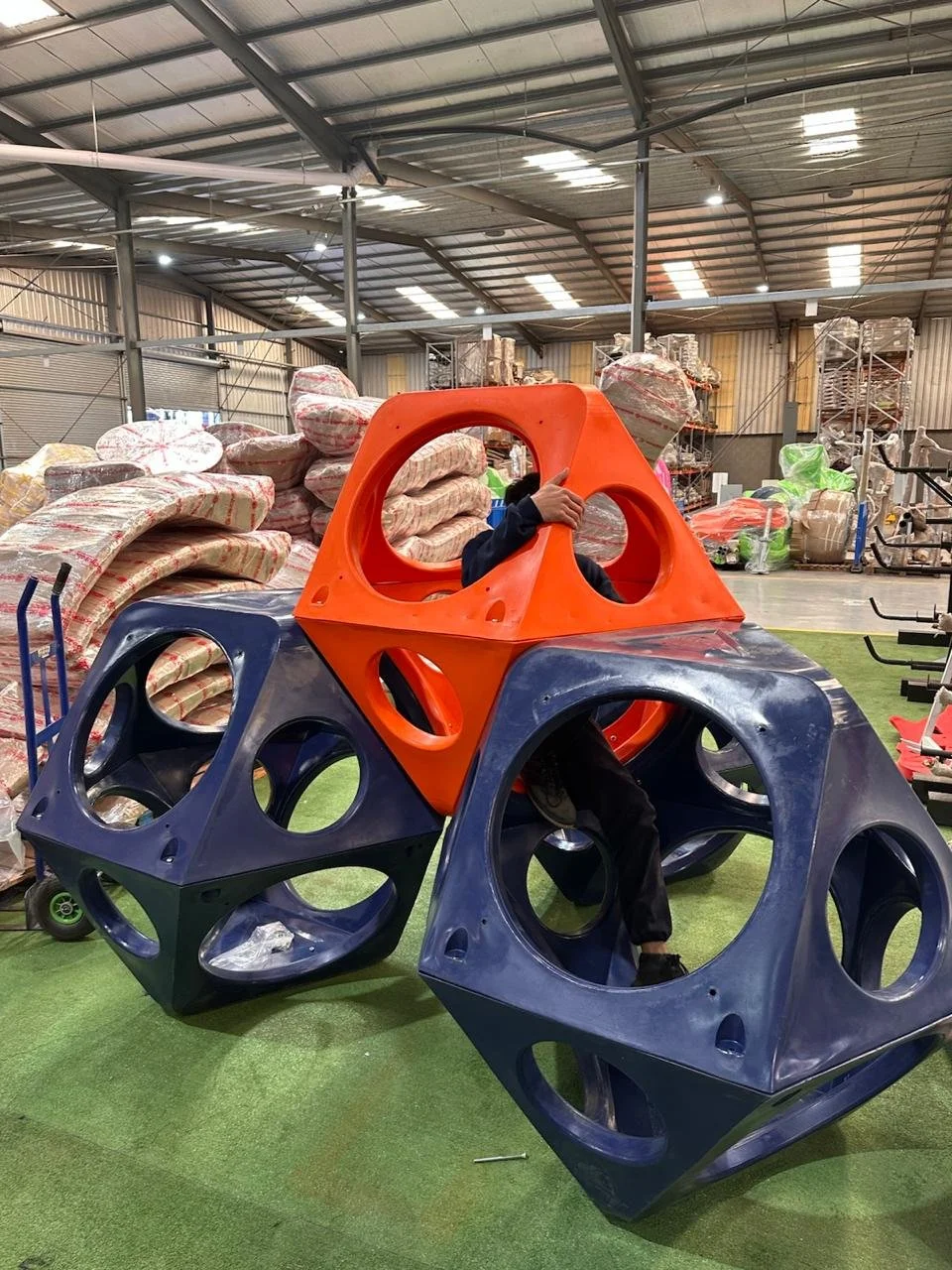 Diseño de matriz modular rotomoldeada con forma hexagonal tridimensional, pensada para el juego activo, el trepado y la exploración infantil. Su geometría perforada permite múltiples configuraciones y conexiones, fomentando el movimiento libre y la interacción grupal. Fabricada en polietileno de alta resistencia, es ideal para plazas, jardines y espacios interiores o exteriores.