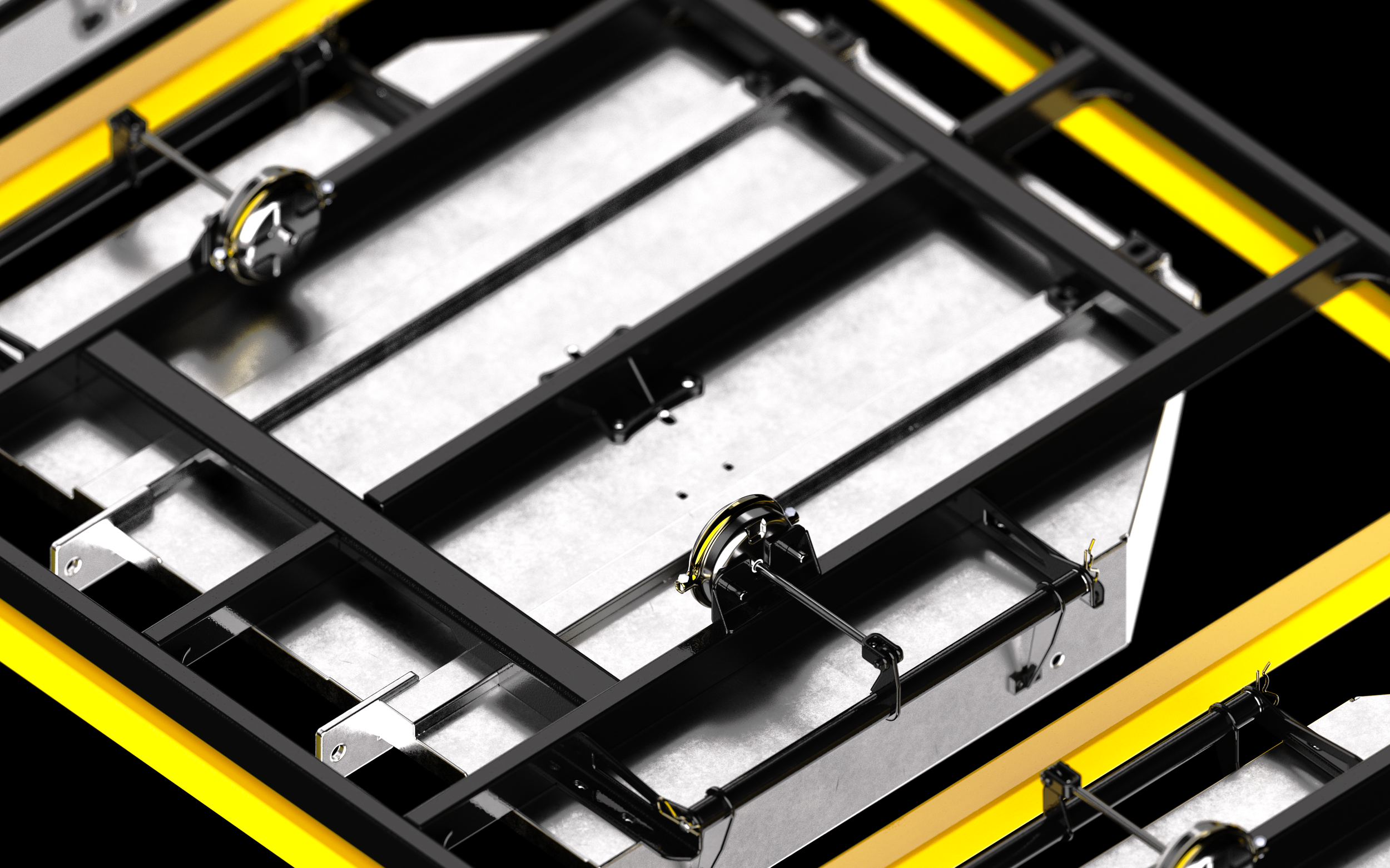 En el render mostrado, la mesa se encuentra configurada con la matriz correspondiente a la desmalezadora ‘‘JAB 1500.’’